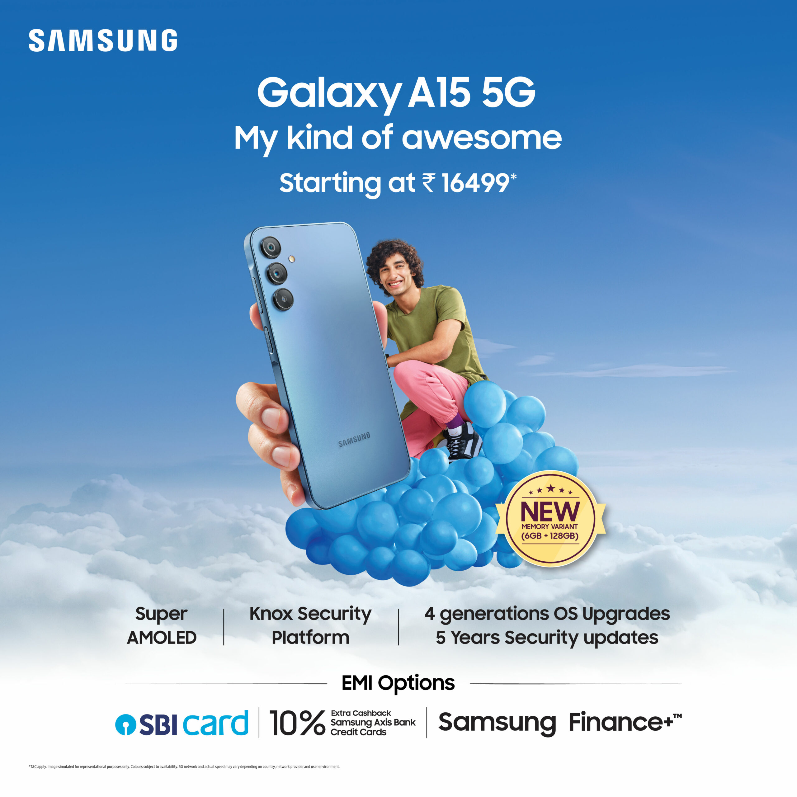 सैमसंग ने गैलेक्सी A15 5G के नए मैमोरी वैरिएंट की घोषणा की, कीमत 17,999 रुपये