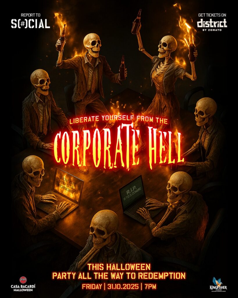 इस हैलोवीन, सोशल ऑफिस बर्नआउट को बना रहा है डर और मस्ती की रात। यह कैफ़े-बार अपने मेहमानों को आमंत्रित कर रहा है “कॉर्पोरेट हेल” में — एक मज़ेदार और व्यंग्यात्मक थीम जहाँ लक्ष्य पूरे न करने वालों के लिए कब्रें होंगी, ओवरटाइम की आत्माएँ ऑफिस में भटकेंगी, और एकमात्र KPI होगा — डांस फ्लोर पर धमाल मचाना!